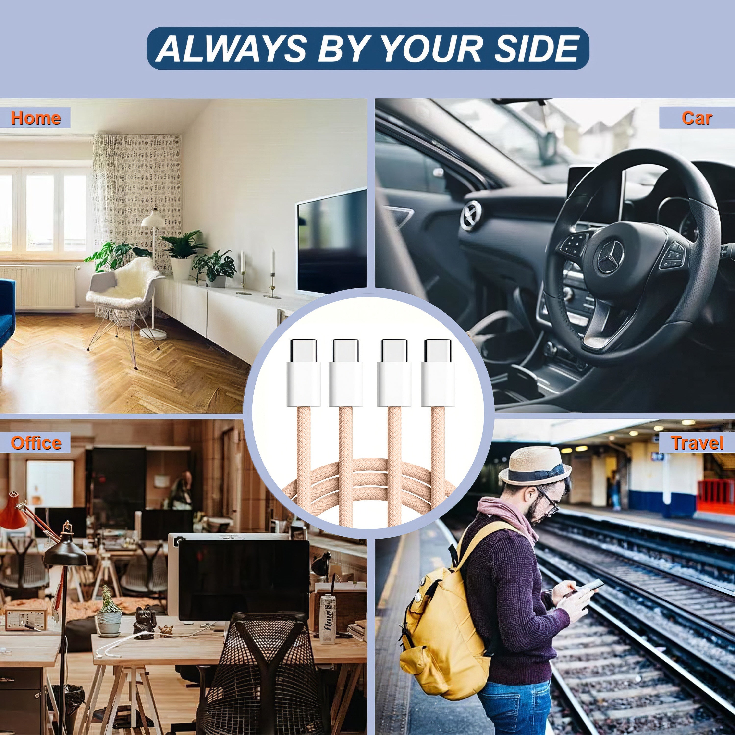 This 2‑pack of braided USB‑C to USB‑C cables delivers fast 60W power delivery, practical 3.3‑ft length, and durable build for everyday charging or syncing between modern devices.